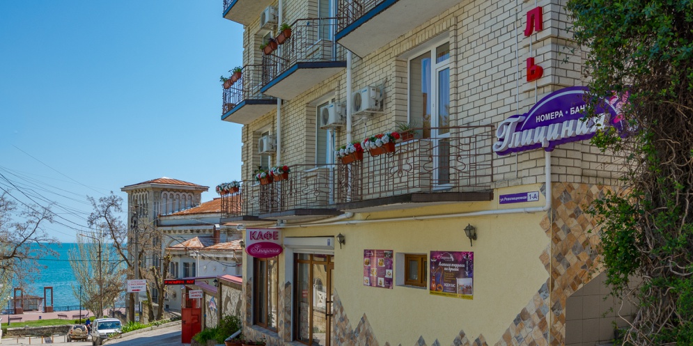 Стильная «Глициния» расположена на одной из старейших улиц Феодосии в 100 метрах от моря. Гостиница граничит с зеленым массивом видовой площадки на Бульварной горке и дореволюционными дачами «Милос» и «Виктория» - достопримечательностями древнего города. Останавливаясь в отеле «Глициния» , для вас всегда найдутся развлечения по вкусу. Насладитесь неспешной прогулкой по феодосийской набережной, любуйтесь морскими видами, открывающимися из номеров и с видовой террасы отеля.