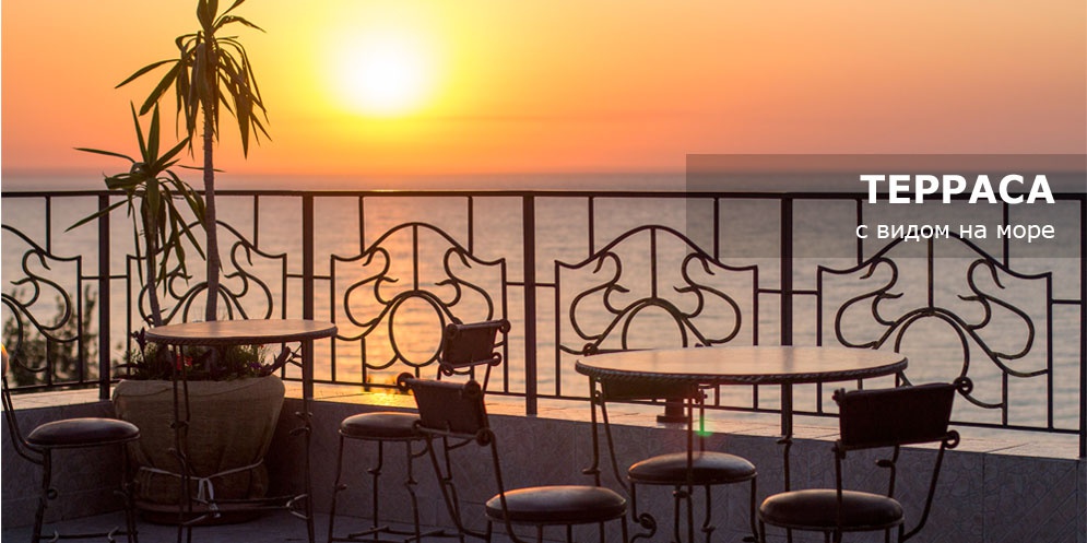 Приглашаем настоящих романтиков и любителей прекрасного посетить одно из самых красивых мест Феодосии - панорамную террасу. Здесь Вы можете отведать вкусные по-домашнему приготовленные блюда! Вас ждут чарующий пейзаж, неповторимая атмосфера и масса приятных впечатлений!